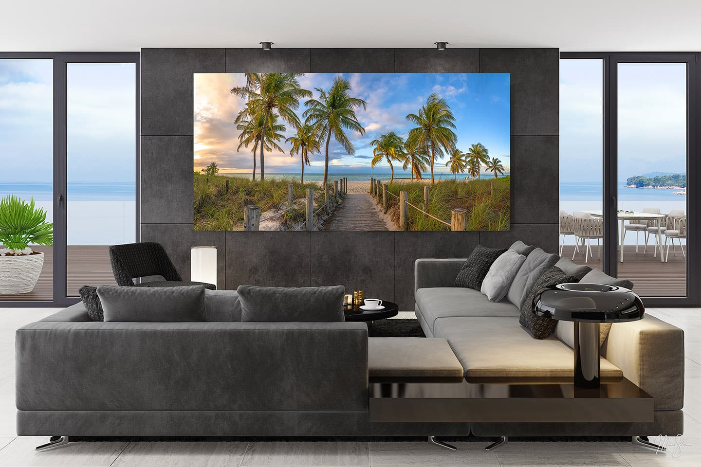 Some homes call for large acrylic or metal statement pieces and framed works for a warmer, traditional feel, while other spaces fit best with smaller paper prints for gallery walls. If you’re unsure which direction to take, I’m happy to help you compare options.