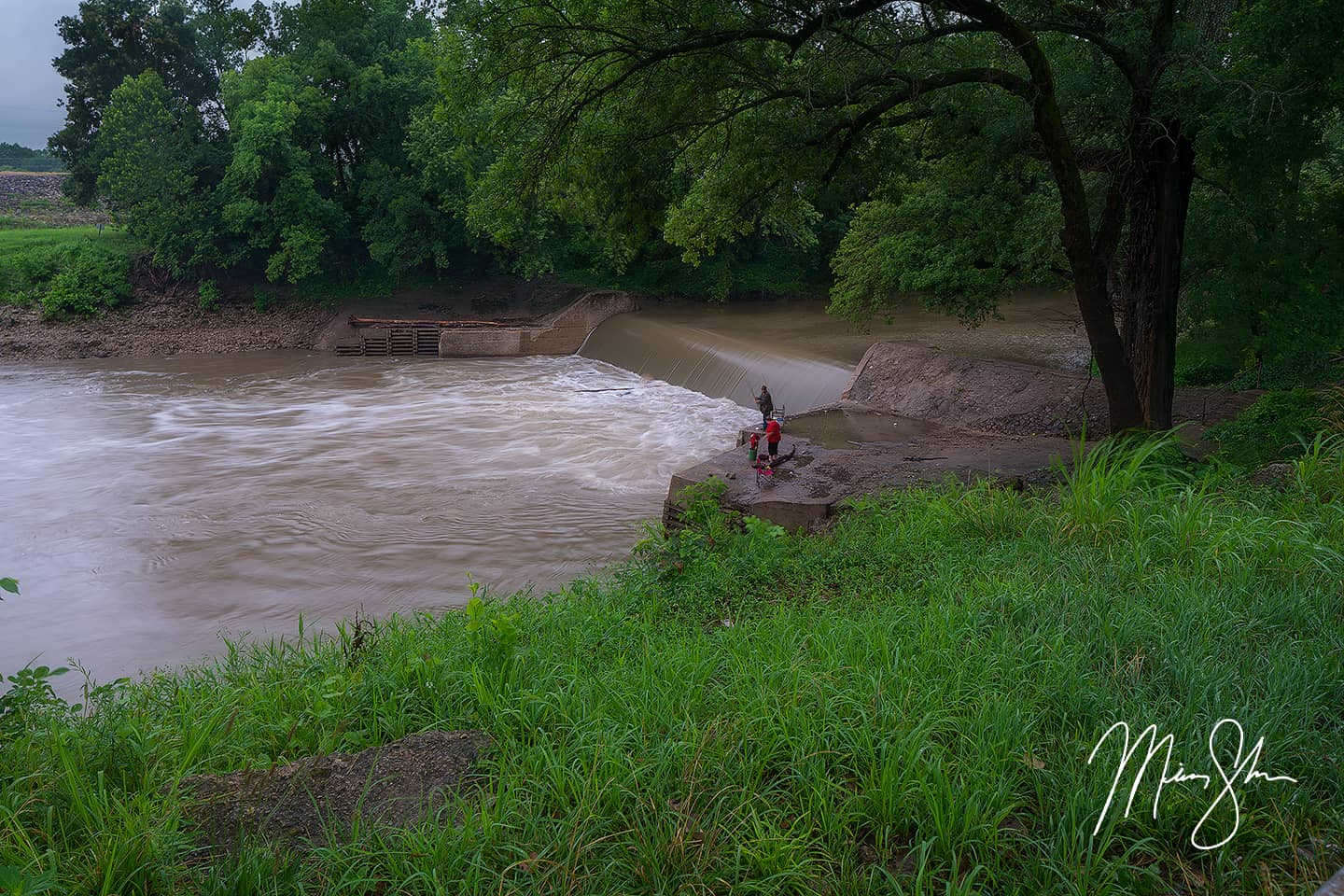 Osawatomie Falls are located on the north side of Osawatomie, Kansas along the Marais des Cygnes River. The Osawatomie Falls are created by the dam near the Creamery Bridge and are a favorite spot for fishing among locals.